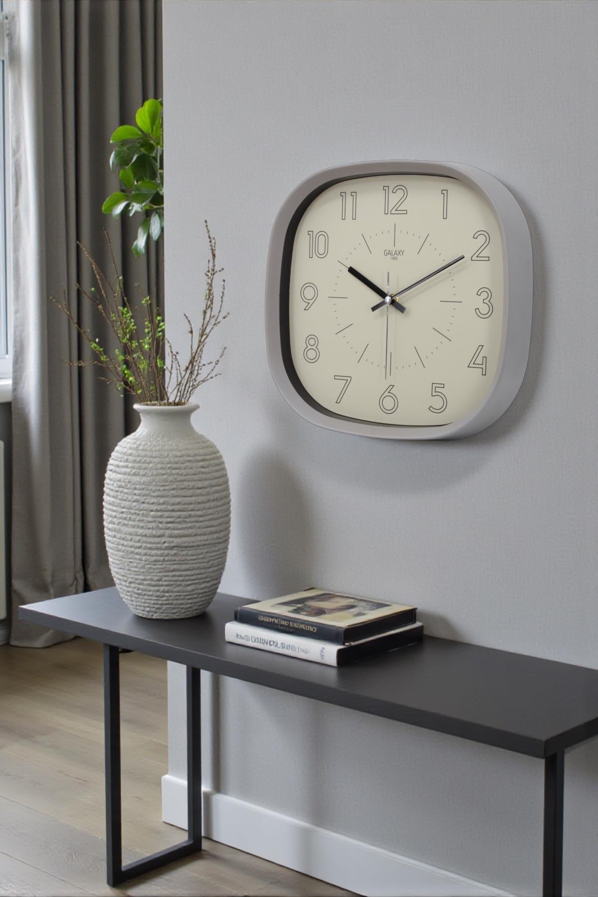 Gri Çerçeve Bej Kadran Siyah Rakamlı Duvar Saati 31 cm (D-221-M-1)